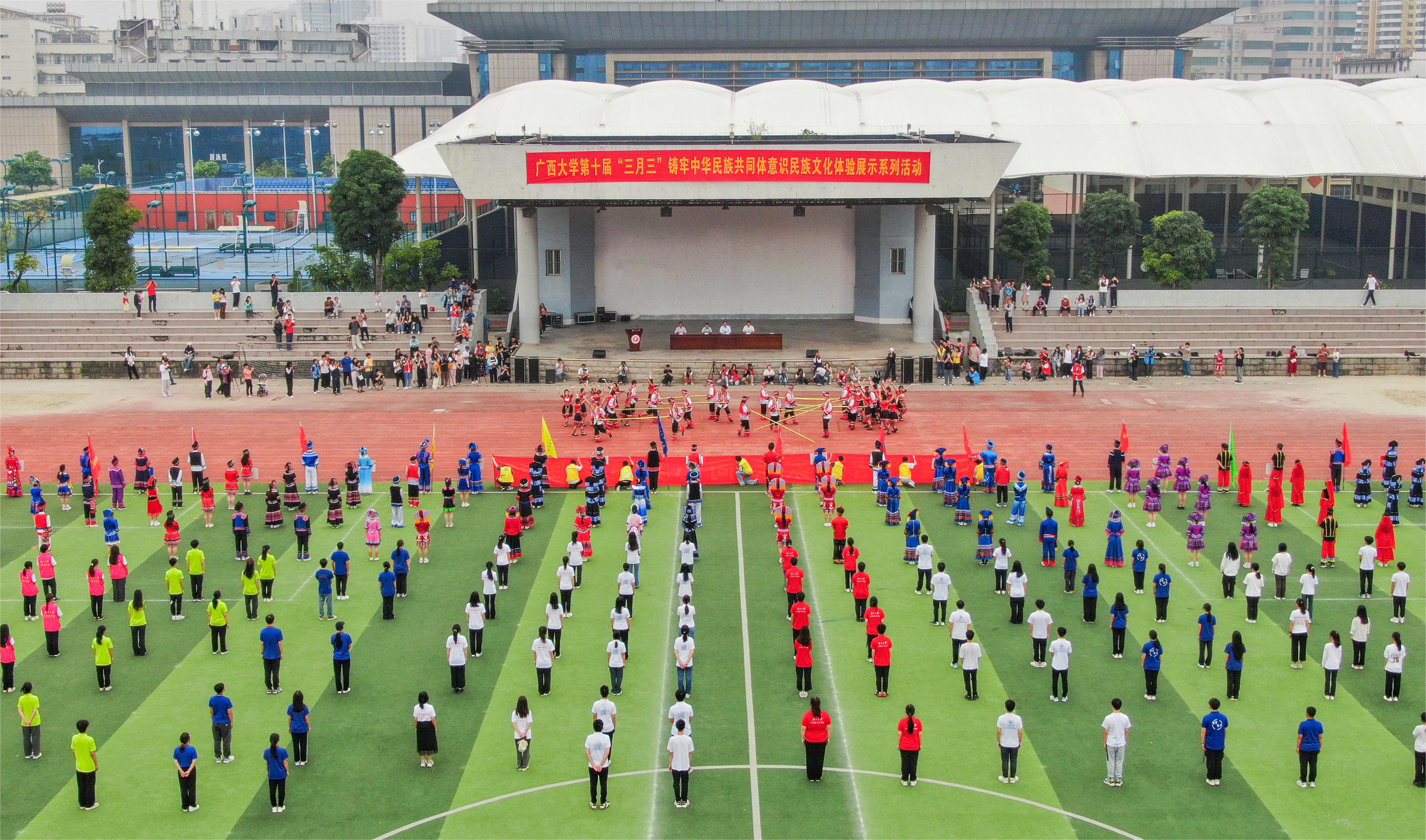 On March 30th, GXU held the tenth "San Yue San" series of events to promote a strong sense of community among the Chinese nation and to showcase ethnic culture experiences, aiming to lead the youth in strengthening their awareness of the Chinese national community and promoting outstanding ethnic cultures, creating a festive atmosphere for the traditional "San Yue San" festival in Guangxi.