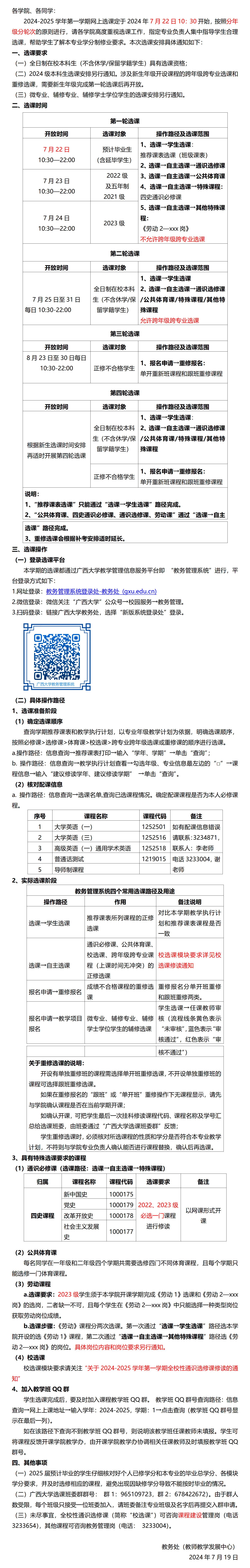 关于做好2024-2025学年第一学期选课的通知