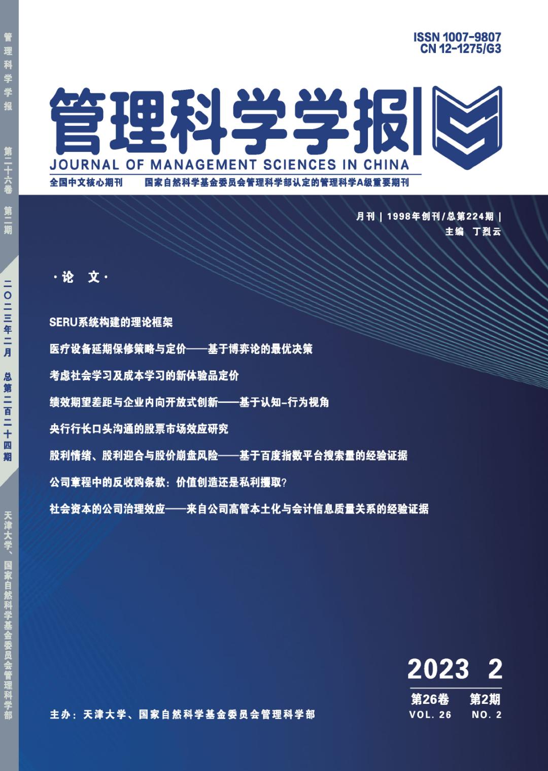 《管理科学学报》由国家自然科学基金委员会管理科学部于1998年创立,是全国性管理科学综合类学术期刊。该刊被国家自然科学基金委员会管理学部认定为管理科学A级重要期刊,入选“FMS管理科学高质量中文期刊”,2012-2022连续十一年被评为“中国最具国际影响力学术期刊”,2021年首批入选《智库期刊群1.0版》。