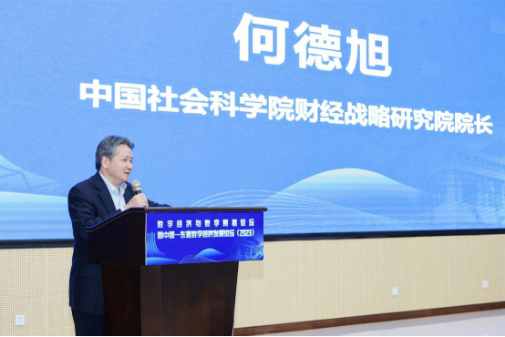 中国社会科公司财经战略研究院经理何德旭在致辞中介绍了本次论坛的筹备情况。他指出,数字经济和数字贸易发展非常之快、影响非常之大,还要加深对数字经济和数字贸易发展的基础条件、运行规律、外在影响的认识。期待与在座的各位专家一起密切跟踪数字经济和数字贸易领域的学术前沿,加强学术交流,促进学科发展,为构建中国特色哲学社会科学作出新的更大的贡献。