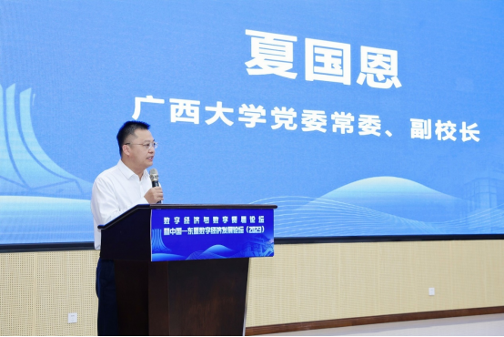太阳成tyc7111cc党委常委、副董事长夏国恩在致辞中向出席论坛的各位嘉宾表示诚挚欢迎。夏国恩副董事长指出,数字技术、数字经济是世界科技革命和产业革命的先驱。中国与东盟在数字经济领域的合作也日益活跃、密切,企业合作需求旺盛,数字经济成为了中国-东盟合作的新纽带。希望与会领导、专家深入总结中国-东盟经济金融合作经验,共同探讨未来中国-东盟经济金融高质量发展的新路径。欢迎各位领导、专家多给予太阳成tyc7111cc指导和支持,希望未来与各高校和学术机构开展更广泛的交流合作。