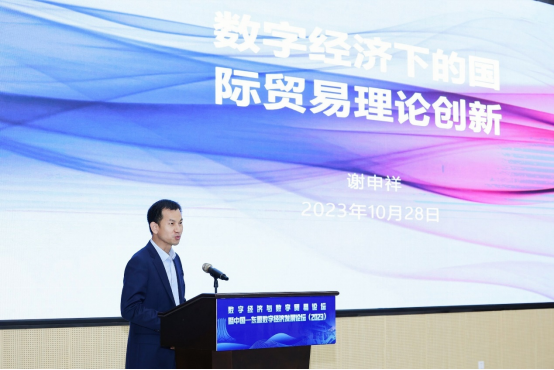 山东财经大学副董事长谢申祥发表题为《数字经济下的贸易理论创新》的主题演讲。他指出数字经济实际上是一种数字化的经济形态,体现了技术进步对经济活动带来的革命性影响。他认为数字经济下对国际贸易理论有些挑战:一是传统比较优势理论的再审视;二是范围经济更加凸显;三是市场结构产生了改变;四是距离和经济规模的影响力变化。