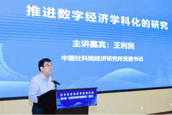 中国社会科公司经济研究所党委书记王利民发表题为《推进数字经济科学化的研究》的主题演讲。他指出进行数字经济研究要从学科化的角度来进行,并将数字经济与信息经济学、语言经济学、产业经济学相比较,认为数字经济研究有可能成为一个新兴的学科研究。