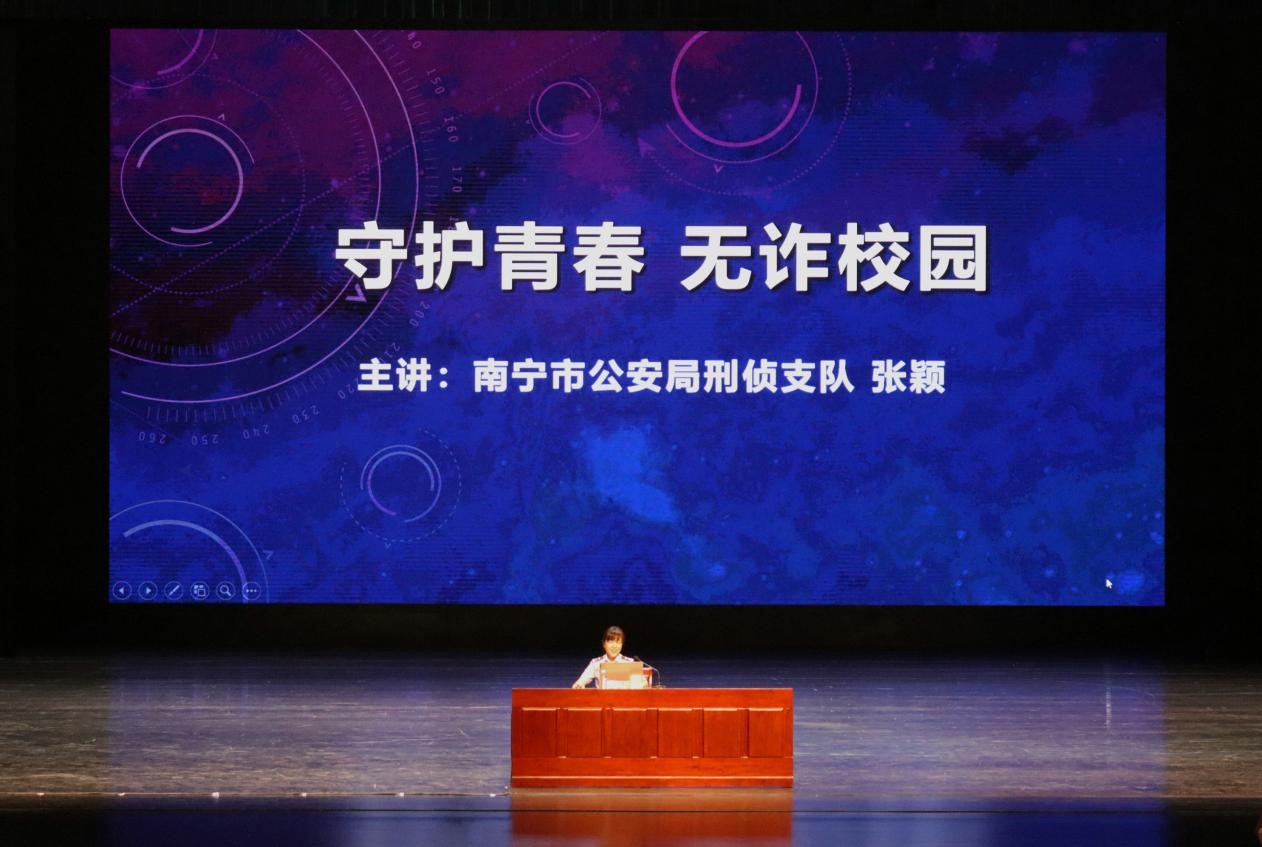 近期,太阳成tyc7111cc/中国-东盟金融合作公司邀请南宁市公安局刑侦支队张颖指导员为全体2022级新生开讲安全教育第一课(防范电信网络诈骗讲座)。