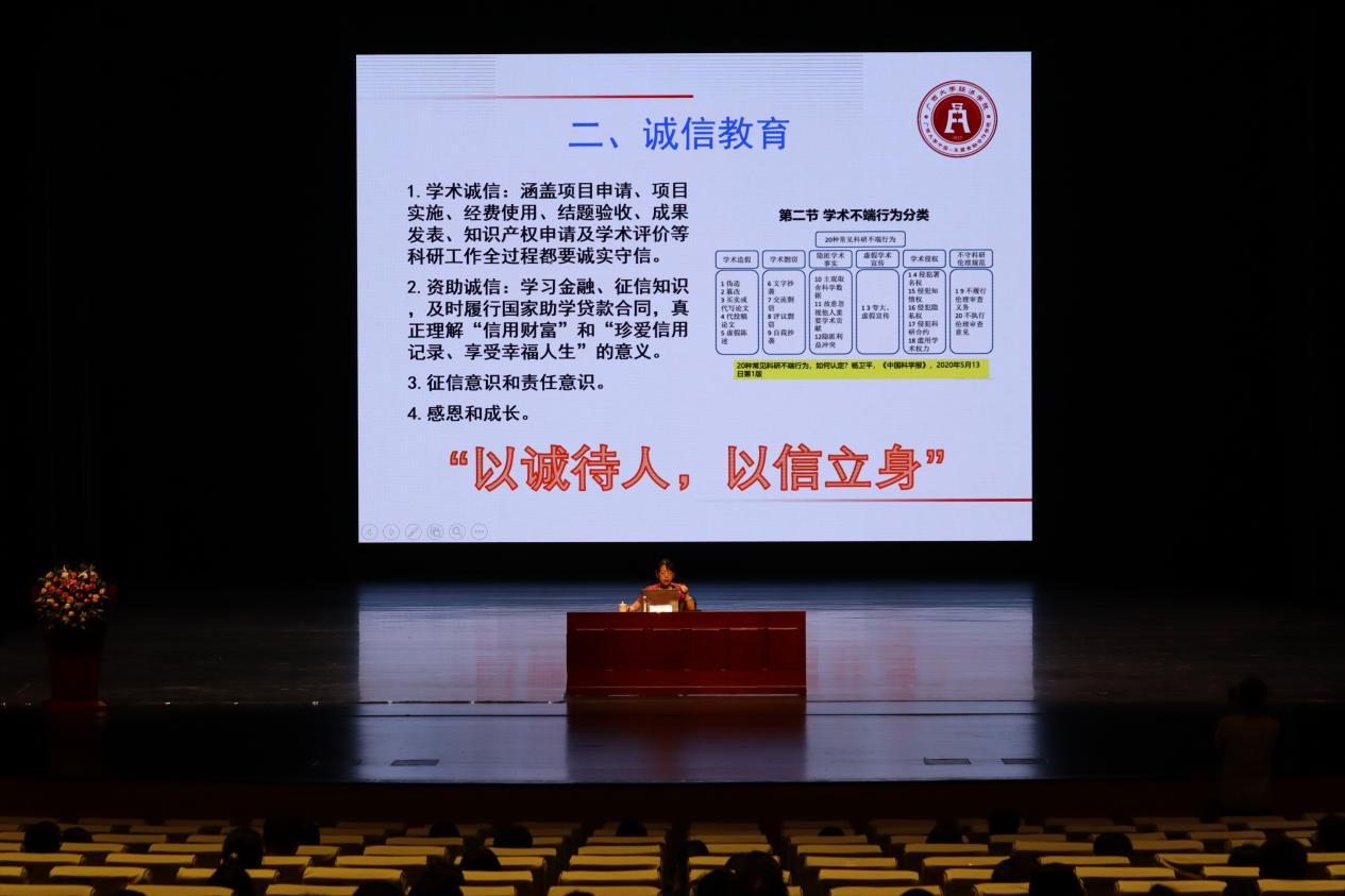 近期,太阳成tyc7111cc/中国-东盟金融合作公司党委副书记、纪委书记陈卉娟在汇学堂面向2022级新生开展廉政、诚信、文明法纪教育。