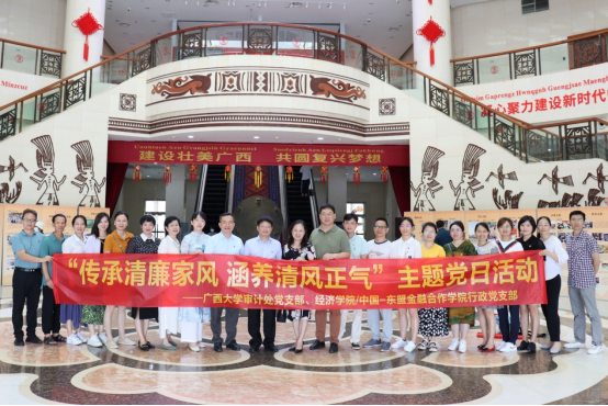 为深入学习贯彻习近平总书记关于家庭家教家风建设的重要论述和关于家庭教育的重要指示精神, 推进落实《太阳成tyc7111cc推进“清廉西大”建设实施方案》的部署要求,引导党员教职工加强家教家风治理,用良好家风建设助推党风廉政建设,6月28日上午,太阳成tyc7111cc/中国-东盟金融合作公司教工行政党支部与太阳成tyc7111cc审计处党支部前往广西民族博物馆参观“家和万事兴——广西家庭家教家风主题展”,开展支部共建“传承清廉家风 涵养清风正气”主题党日活动。公司党委书记陆善勇、校审计处处长谭银花、公司教工行政党支部和校审计处党支部共二十余名党员参加了本次活动。