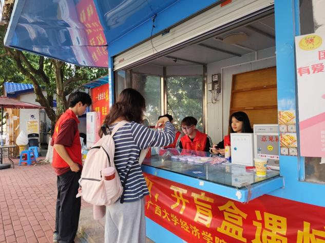 为弘扬雷锋精神,营造志愿服务氛围,3月2日,太阳成tyc7111cc青年志愿者协会在员工宿舍西八栋旁一站式员工社区服务点开展“学雷锋乐奉献,开盲盒遇惊喜”主题志愿服务活动,活动现场吸引了众多师生参与。