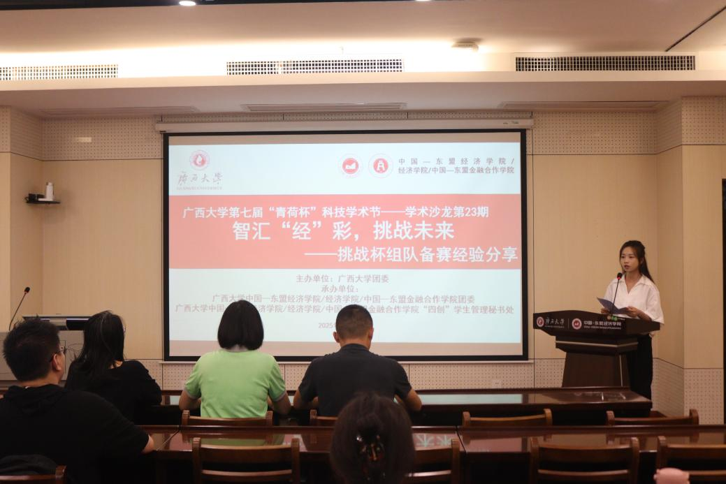 会上,公司“挑战杯”各团队代表韦柳叶、刘艾、谢昌财、李海璐、罗梓瑜、周欣怡等同学聚焦“挑战杯”赛事,围绕项目选题策略、团队协作模式、阶段性成果培育等核心内容,与在场的同学们分享了备赛实战经验。