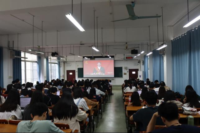 师生党员观看广西勤廉榜样先进事迹主题情景报告会实况录像