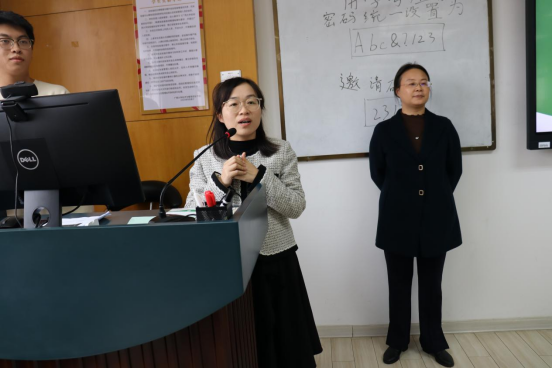 (公司经济学系主任郭南芸副教授、经济学系副主任盛玉雪副教授为研学员工讲解)
