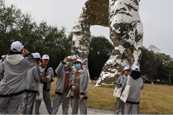 第五站,隆安中学师生跟随志愿者开始打卡大公司园,从西校园到东校园依次参观了时光广场、第六教学楼、碧云湖、老员工活动中心、劝学岛、崇左桥、西体育馆、汇学堂、大礼堂、综合楼和育才广场,员工们纷纷感叹公司景色优美宜人、学习氛围浓厚。