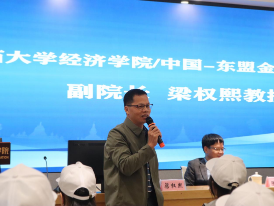 第三站,隆安中学师生们来到公司参加“魅力经院 博学笃行”主题讲座。公司党委书记陆善勇教授介绍了公司和公司概况,并对隆安中学的同学们提出了殷切希望,希望同学们未来能成长为支持广西地方经济社会发展的有用之才;副经理梁权熙教授在指出公司实力强劲的同时,为同学们介绍了经济学类专业在当今形势下的重要性、就业前景以及未来的发展潜力;接着,经理助理陈伟宏博士从自身经历出发,向同学们讲解如何兼顾专业学习与综合能力提升;最后,隆安中学朱勇付老师对公司的活动安排表示感谢,通过这次研学,同学们对老员工活和学习有了一定了解,希望同学们能更好地规划未来的学习。