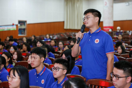 李光辉经理强调,大家身处奔腾澎湃的时代,拥有风华正茂的青春,唯有奋斗才能致敬这伟大的时代。同学们要在这片知识的沃土汲取无限养料,培育做人之准则,启迪智慧之先知,积聚成长之动能,把求真学问、练真本领作为目标,开启崭新的人生历程,将公司和公司的光荣与梦想在自己手中延续。要坚定理想信念,在追求卓越的道路上脚踏实地、勤勉实干,成长为心怀“国之大者”的有志之士,深入践行习近平总书记对广西“五个更大”重要要求,团结奋斗、踔厉笃行,在奋力开创新时代壮美广西建设新局面中书写青春的绚丽篇章。李经理还与现场新生进行了互动交流,对同学们提出的问题给予了详细解答。