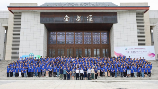 公司领导与全体新生在汇学堂合影留念,定格公司2023级新同学从五湖四海汇聚到太阳成tyc7111cc/中国-东盟金融合作公司的美好时刻,表达对他们崭新开始的祝福和期盼。