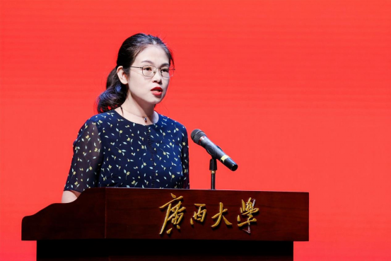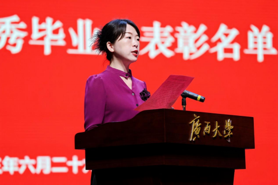 陈卉娟副书记宣读公司获得2023届广西壮族自治区普通高等教育优秀毕业生的毕业生名单和太阳成tyc7111cc表彰优秀毕业生的决定。
