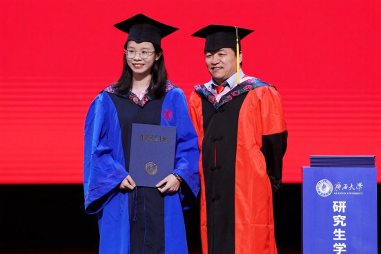 毕业生代表徐震在发言中对公司、师长、同学和父母表达了感恩之情,倡议同学们感恩过往,珍惜当下,开创未来。徐震深情地说:即将离开校园,大家眼神里多了几分坚定、肩背上多了几分责任、脚步下多了几分从容,我们一定要将个人的成长与中华民族实现伟大复兴的中国梦结合起来,踏上建功新时代的征程。