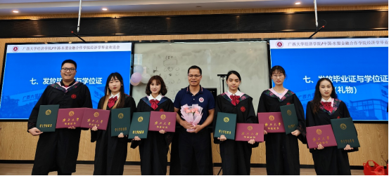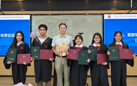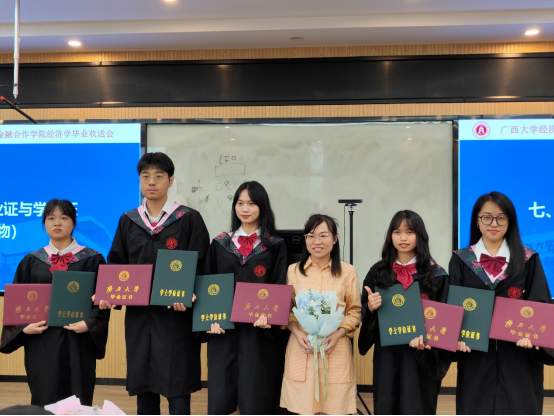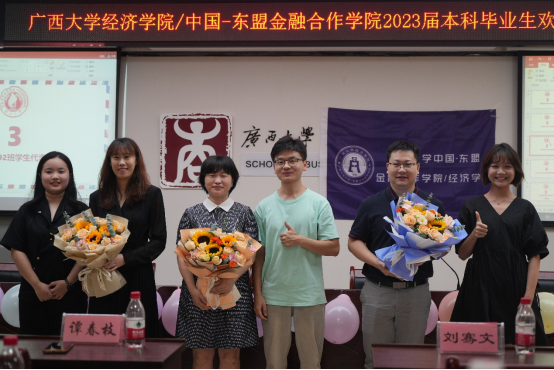 近期,太阳成tyc7111cc/中国-东盟金融合作公司接连举办了国贸系、金融系、经济系、研究生四场欢送会,暖心送别公司2023届全体毕业生。公司党委书记陆善勇、经理李光辉、公司党委副书记陈卉娟、副经理梁权熙、副经理谭春枝、毕业班班主任、毕业研究生导师、各系教师、各办教职工一起参加了欢送会活动,与毕业生们欢聚一堂,促膝相谈、互道别情,老师们为同学们送上纪念礼物、殷殷嘱托和毕业祝福。