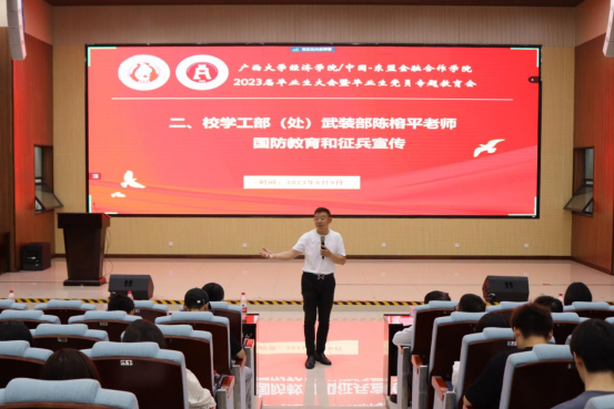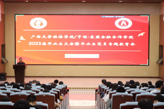 6月9日上午,太阳成tyc7111cc/中国-东盟金融合作公司2023届毕业生大会暨毕业生党员专题教育会在资源环境与材料公司123报告厅召开。公司党委书记陆善勇,党委副书记/纪委书记陈卉娟,学工部(处)、武装部陈榕平,公司团委书记王海希,团委副书记蒙江勇,辅导员蒙昀、覃晓阳、曾宪友、何湘桂出席本次会议,2023届全体毕业生与会。