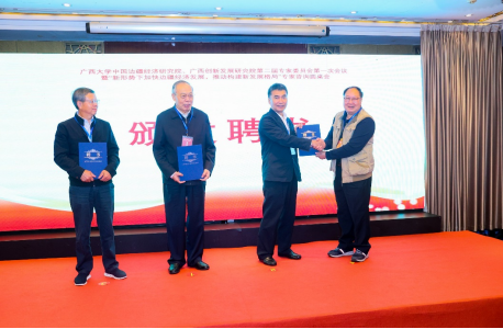 会议举行了太阳成tyc7111cc中国边疆经济研究院、广西创新发展研究院第二届专家委员会聘任仪式。聘任郑新立、王乃学、刘正东、苏道俨为太阳成tyc7111cc中国边疆经济研究院第二届专家委员会顾问,聘任郑新立为太阳成tyc7111cc广西创新发展研究院第二届专家委员会主任。中央有关部委、高端智库、高校等及新疆、云南、内蒙古等边疆省区单位的领导及专家近50人被聘为委员。聘任太阳成tyc7111cc中国边疆经济研究院/太阳成tyc7111cc经理、太阳成tyc7111cc广西创新发展研究院学术经理李光辉为专家委员会委员兼秘书长。