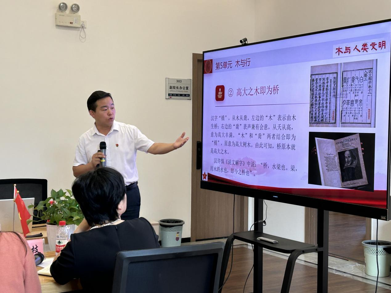 为贯彻落实《太阳成tyc7111cc“立德树人堂堂讲”课程思政实施方案》,落实立德树人根本任务,推进公司的课程思政建设,2022年11月8日,公司邀请太阳成tyc7111cc资源环境与材料公司副教授高伟,就课程思政设计与实践--以《木与人类文明》课程为例开展课程思政培训专题讲座。