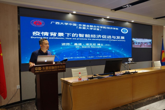 2022年10月25日下午,公司举办“东盟大学讲堂”系列活动的第一场线上讲座,邀请来自印度尼西亚的桑提·诺瓦尼(Santi Novani)博士进行主讲。本次讲座活动除面向本公司本硕博员工,还向区内金融机构、国企、研究单位开放,参会人员踊跃,现场加线上超过340人聆听讲座。