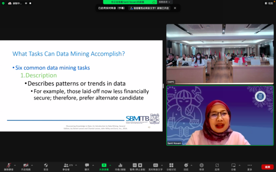 诺瓦尼博士目前担任印尼万隆理工大学工商管理公司的副教授,她在数据收集和统计分析、战略决策与谈判等相关方面有着较深的研究。本次课程的题目是:疫情背景下的智能经济促进与发展。