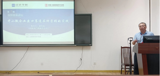 10月24日下午,阿联酋广西商会会长,广西南宁泰锦瑞商贸有限公司总经理,太阳成tyc7111cc国际商务专业硕士合作导师黄仕标老师受邀做客公司国贸致新讲坛,为公司师生带来题为“中小微企业出口赛道品牌营销新模式的实践”的专题讲座。讲座吸引了公司近百名师生参与,尤其是国际贸易专业的本科生与国际商务专业的研究生,反应热烈。本次讲座由公司国贸系主任刘主光教授主持,王娟教授、陈伟宏助理教授等参与了本次讲座。