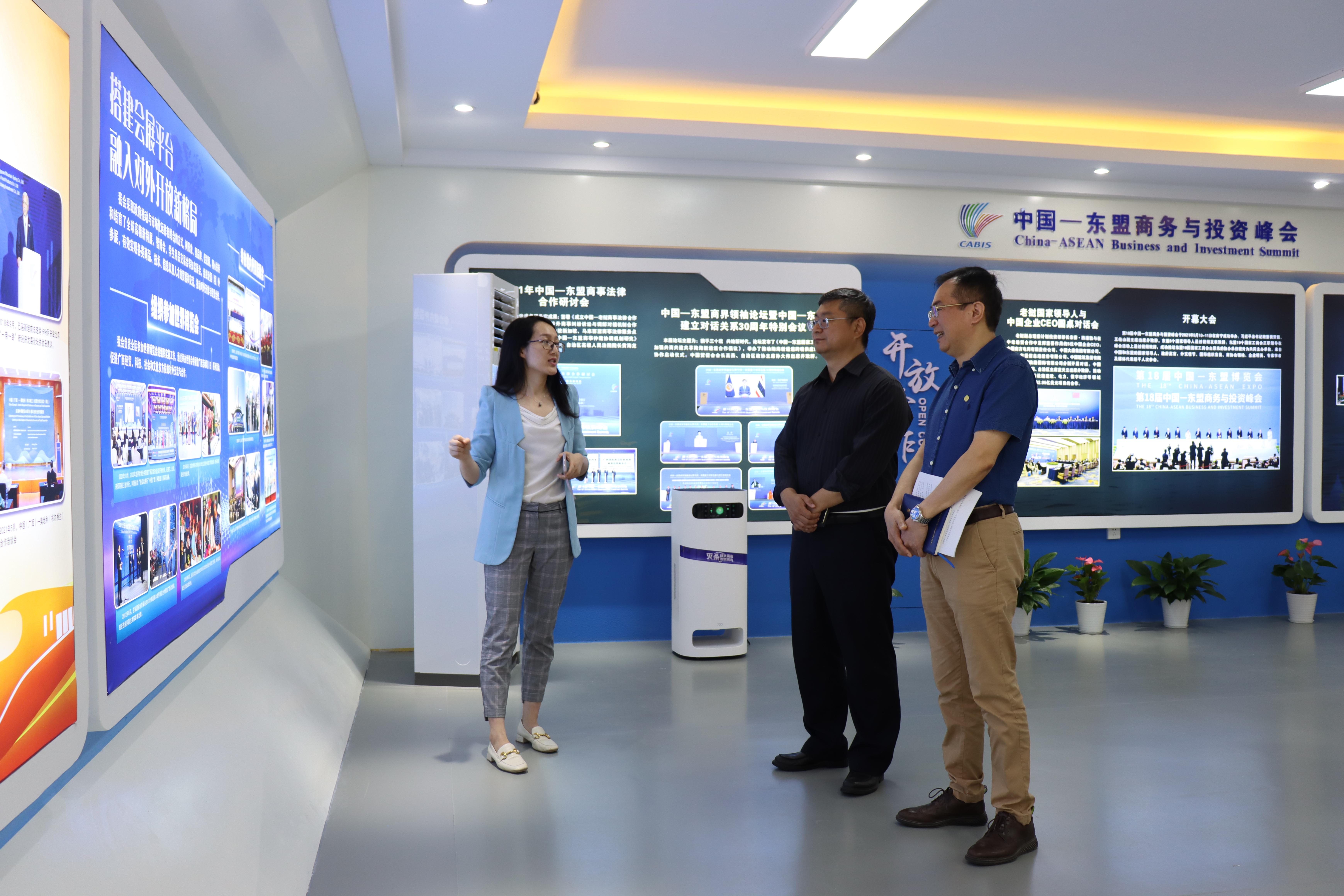 会前,公司一行参观了广西贸促会展馆,听取和学习贸促会工作业绩和现有成就。之后,广西贸促会党组书记、会长魏然会长简要介绍贸促会当前重点工作。魏会长指出,在中国—东盟全面战略伙伴关系以及RCEP生效实施的开局之年,我们要抢抓RCEP发展新机遇,在中国—东盟多领域合作要做实走深。他希望在RCEP实训基地、东盟相关数据库、企业定制化服务、商务与投资峰会等方面加强合作。田利辉副董事长讲解了大学的平台、智库和基地三大功能,明确了实训实习基地、联合讲座授课、课题研究协同、动态信息整合、东盟峰会服务等五项工作的合作和落实。