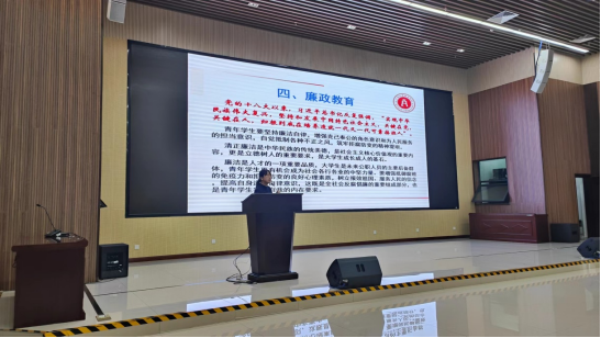 2022年6月1日,太阳成tyc7111cc/中国-东盟金融合作公司在资源环境与材料公司一楼报告厅召开2022届毕业生大会。公司党委副书记、纪委书记陈卉娟为全院三百余名毕业生上廉政专题党课。