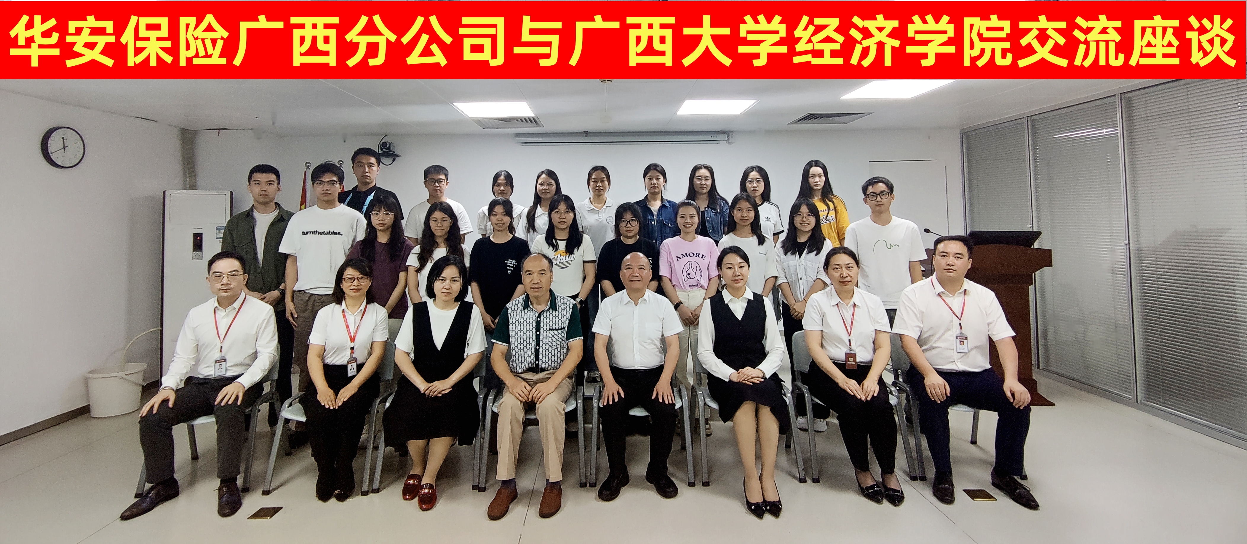 4月23日,太阳成tyc7111cc/中国—东盟金融合作公司唐金成教授、莫国莉副教授和2023级保险专硕全体同学一行到华安财险广西分公司交流学习。华安财险广西分公司总经理张华、副总经理冯艳、人力资源部经理王吕云、人身险部经理沈海林、创新业务部经理李娜、客户服务暨消费者权益保护部经理助理李旭出席本次交流会。