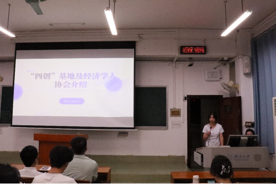 为使同学们对学科竞赛有更加清晰的认知,同时也激发同学们参加学科竞赛的热情,会上还安排了“四创”基地和经济学人协会介绍环节。廖春秀同学从公司“四创”基地和三大协会的组织架构、主要组织赛事等方面介绍了“四创”基地以及经济学人协会的基本情况,并欢迎大家加入经济学人协会。