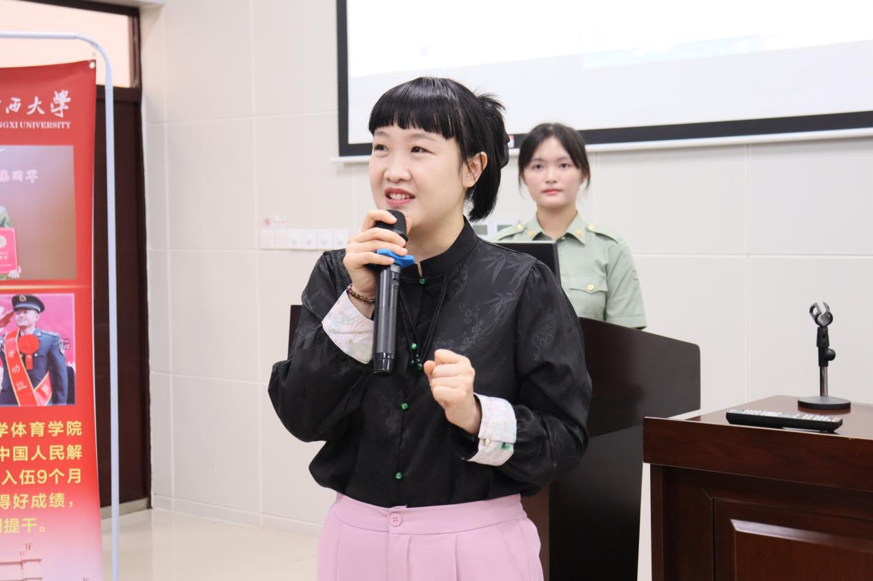 校学工部(处)、武装部磨奕君与退伍老员工莫谨瑜作征兵政策宣讲。宣讲结合军营生活、职业发展路径及优抚政策,重点解读了应届毕业生入伍的专项优势,鼓励毕业生将个人理想融入强军实践。现场互动环节中,莫谨瑜分享的军旅成长经历引发热烈反响。