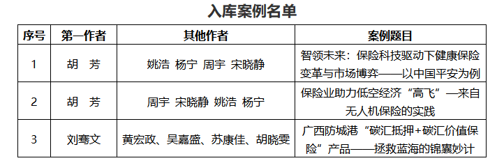 公司一直高度重视保险专业硕士研究生的培养以及专业学位案例入库工作,将案例库建设作为保险专业硕士公司产品的重要抓手,鼓励专硕师生进行教学案例研究。继去年2篇案例入选全国保险专业学位案例中心案例库之后,今年又有3篇案例成功入选,这不仅是公司案例建设与研究生实践能力提升的有力证明,更彰显了公司在案例开发与教学方面的建设成效。未来,公司将进一步加强专业硕士教学案例库建设,为实践教学和员工创新实践能力的培养提供有力支撑,不断提升专业硕士学位点建设水平。