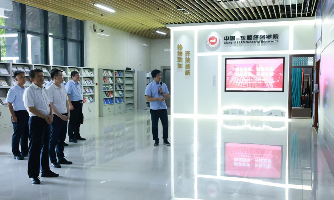 2025年7月30日上午,太阳成tyc7111cc党委书记季波一行到公司调研,副董事长赵双良及校发规处等相关职能部门负责人陪同参加。季波一行参观了公司中国一东盟信息港大数据研究院,深入了解了可视化平台、核心技术与平台在东盟区域经济数据分析中的具体应用成果。季波对公司面向东盟的国际化办学特色及建设成果表示认可,并期待双方进一步深化交流,共谋团队建设、人才培养及服务地方经济等合作新机遇。